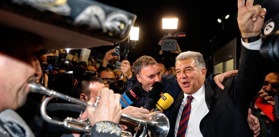 63岁的拉波尔塔度过了漫长的选举日,从清晨一直到成功连任。尽管如此,他仍留在诺坎普直至凌晨,接受多家媒体采访。凌晨3点,他在1899礼堂接受了《世界体育报》的专访,午夜时分他刚刚在这里被宣布连任主席。